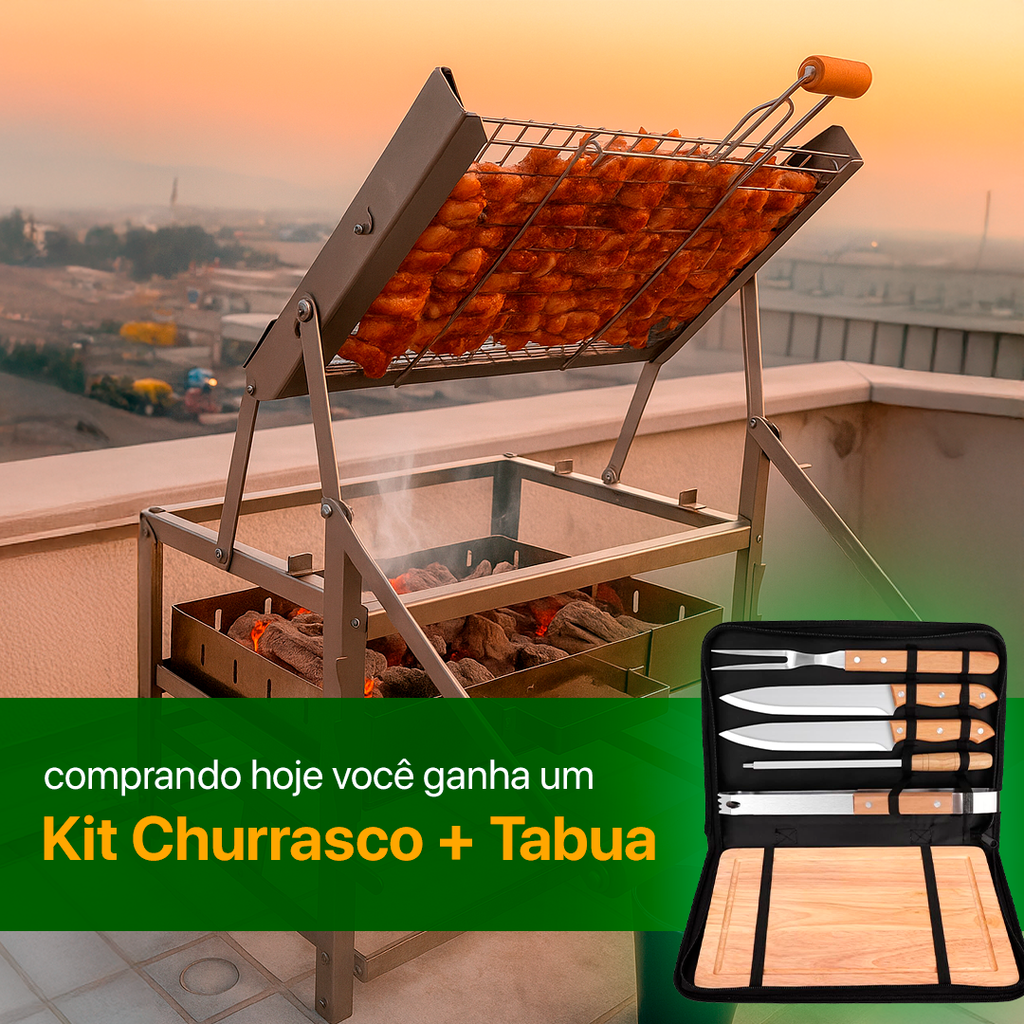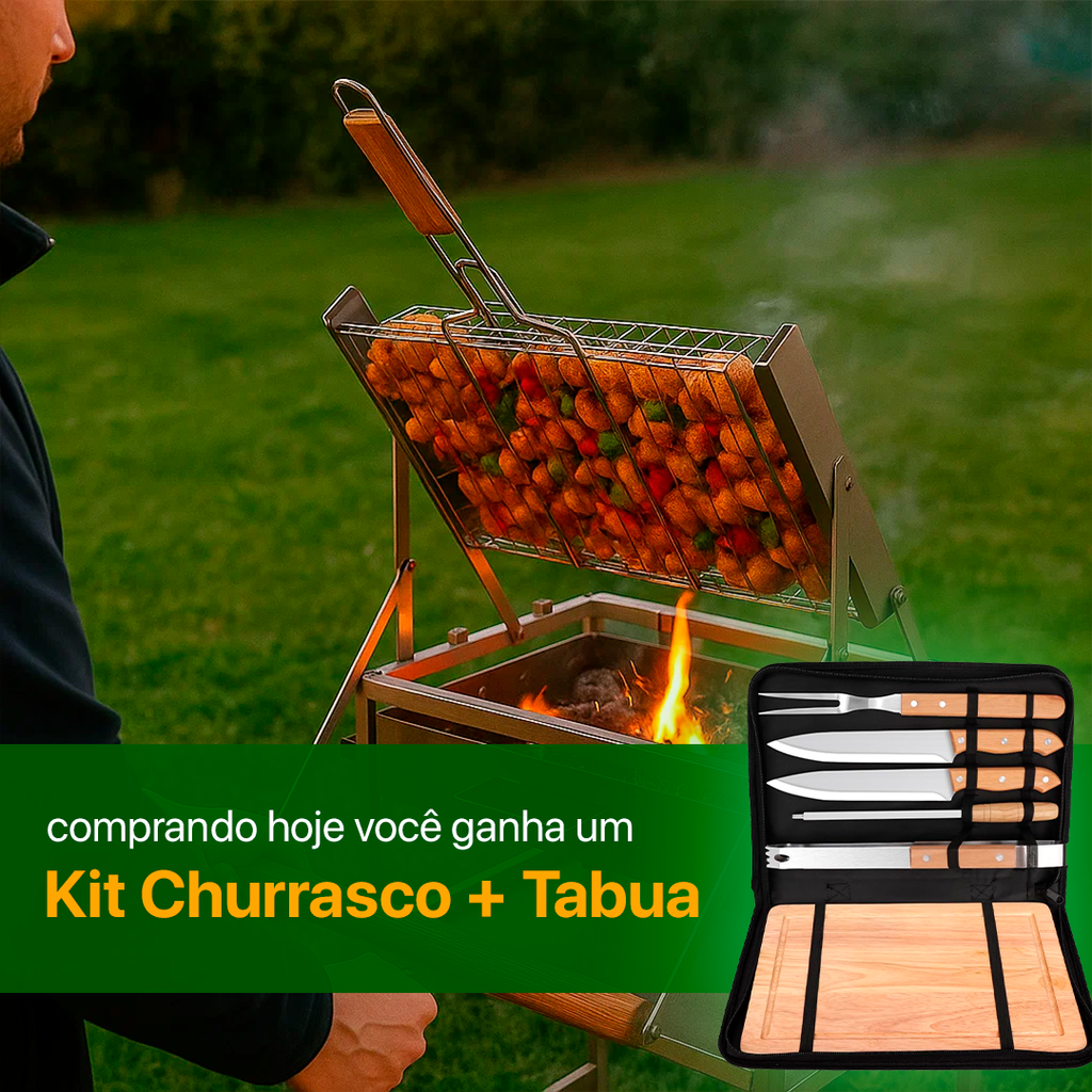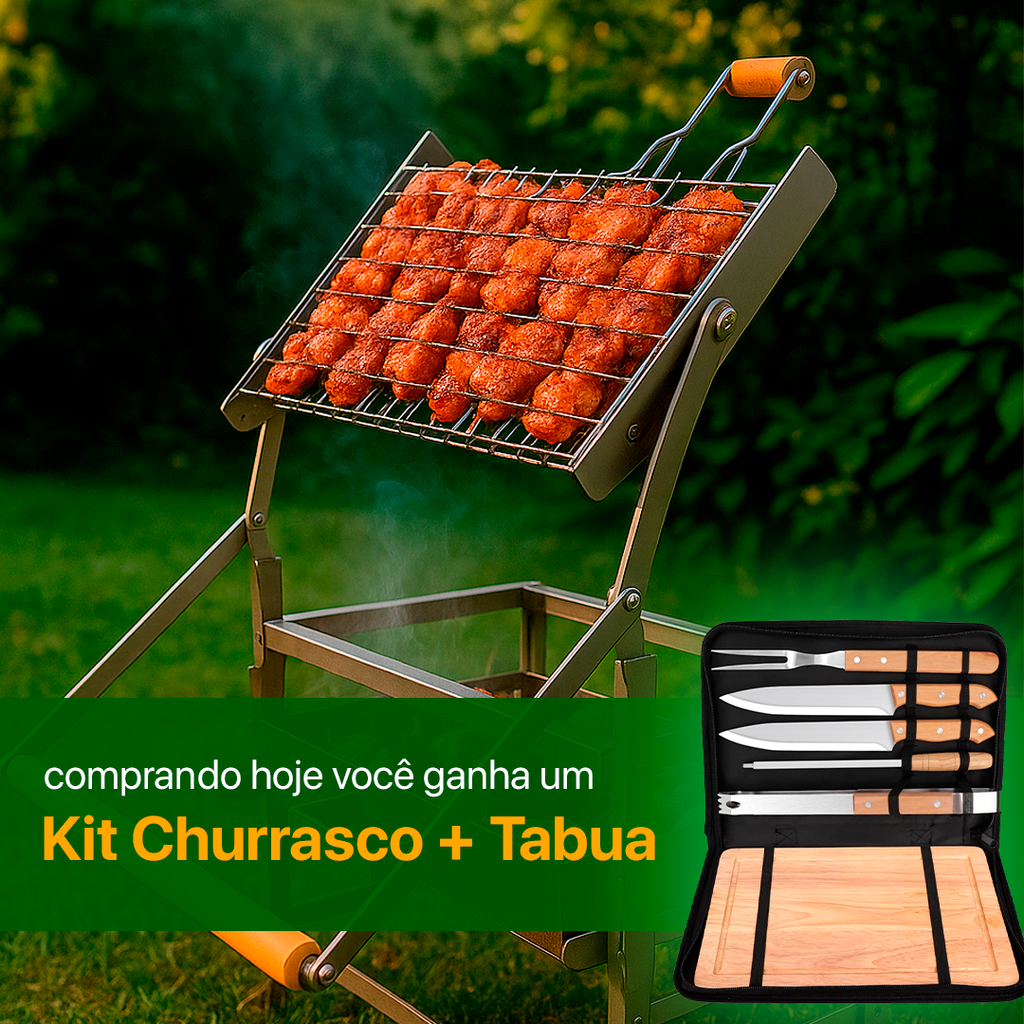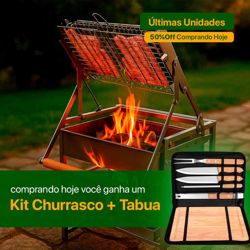 Você garante um Kit Churrasco com Facas, afiador, garfo, maleta + tábua totalmente grátis! Mas corra porque a promoção só dura até os estoques acabarem.